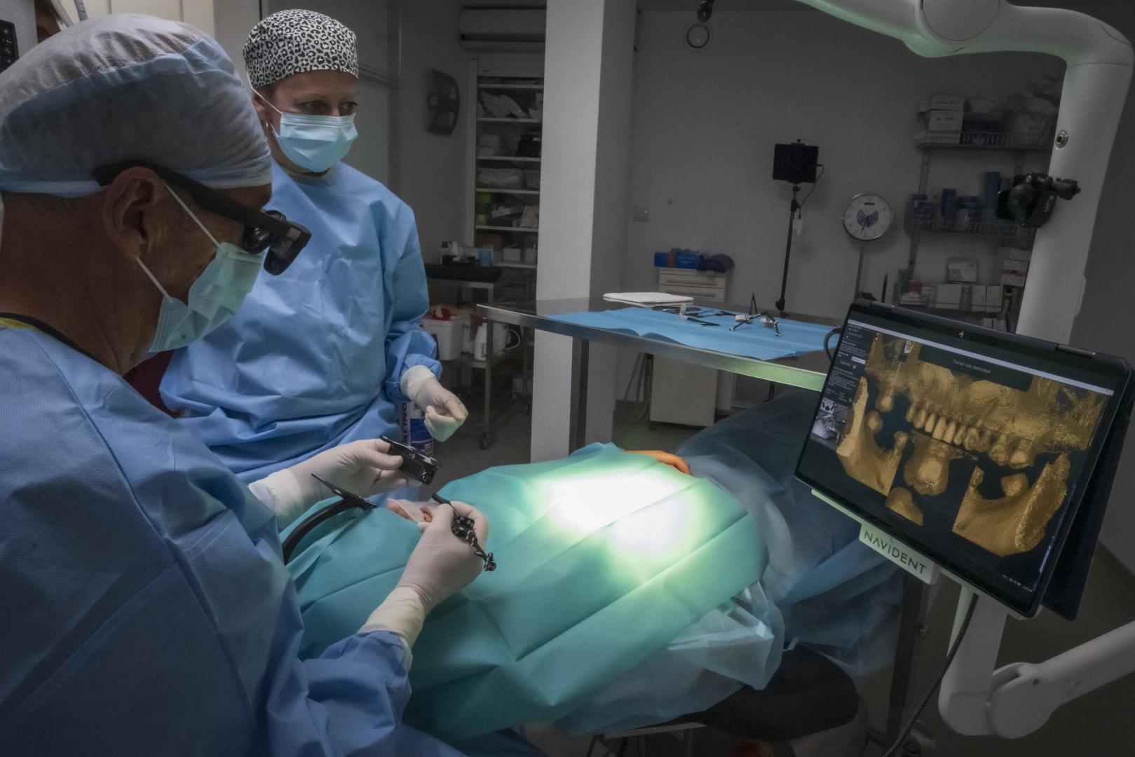 Avant l’intervention, chaque étape est minutieusement planifiée grâce à des simulations 3D et à la chirurgie guidée, garantissant un positionnement optimal des implants.